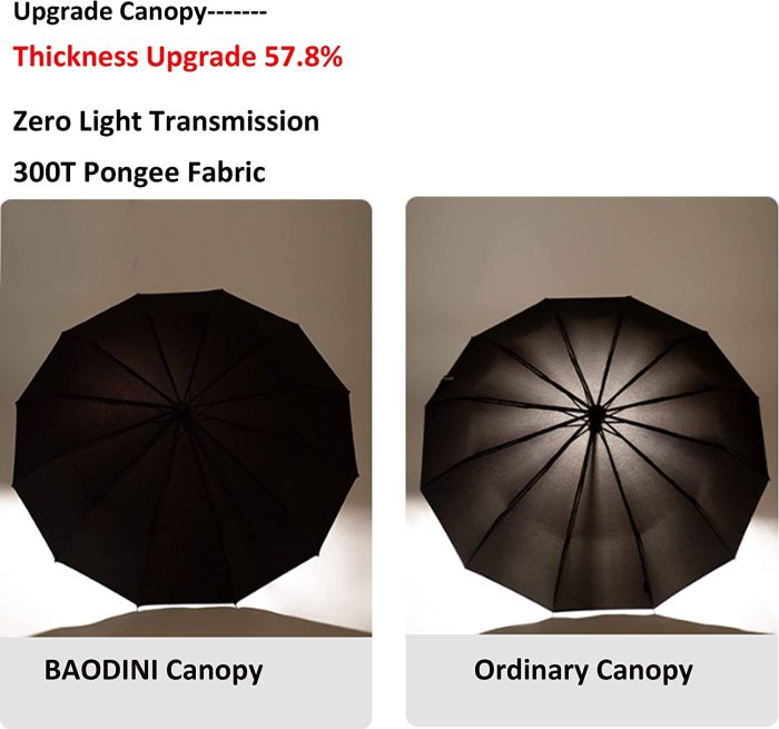 Sturdy Umbrella for Men: You will be really happy with the excellent quality of this adult umbrella. The fabric touched very comfortable which is thicker than than similar canopy as well higher waterproof and alos uv protecion.