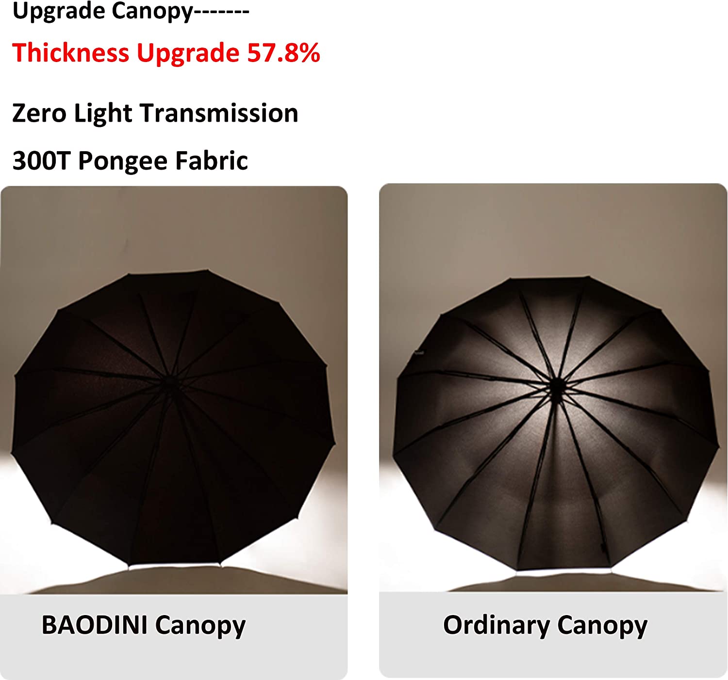 Windproof & Heavy Duty: 12 ribs make it a stronger windproof umbrella than others with 8 ribs it was designed with a three-fold chrome plated metal shaft and strong metal frame to allow for greater stability in high winds.
