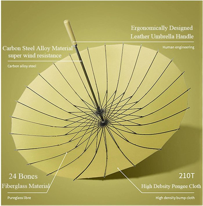 .62 inches (approximately 157.5 cm) large double canopy design comfortable and non-slip EVA handle. The frame is sturdy and durable and can withstand strong wind heavy rain or hot summer.