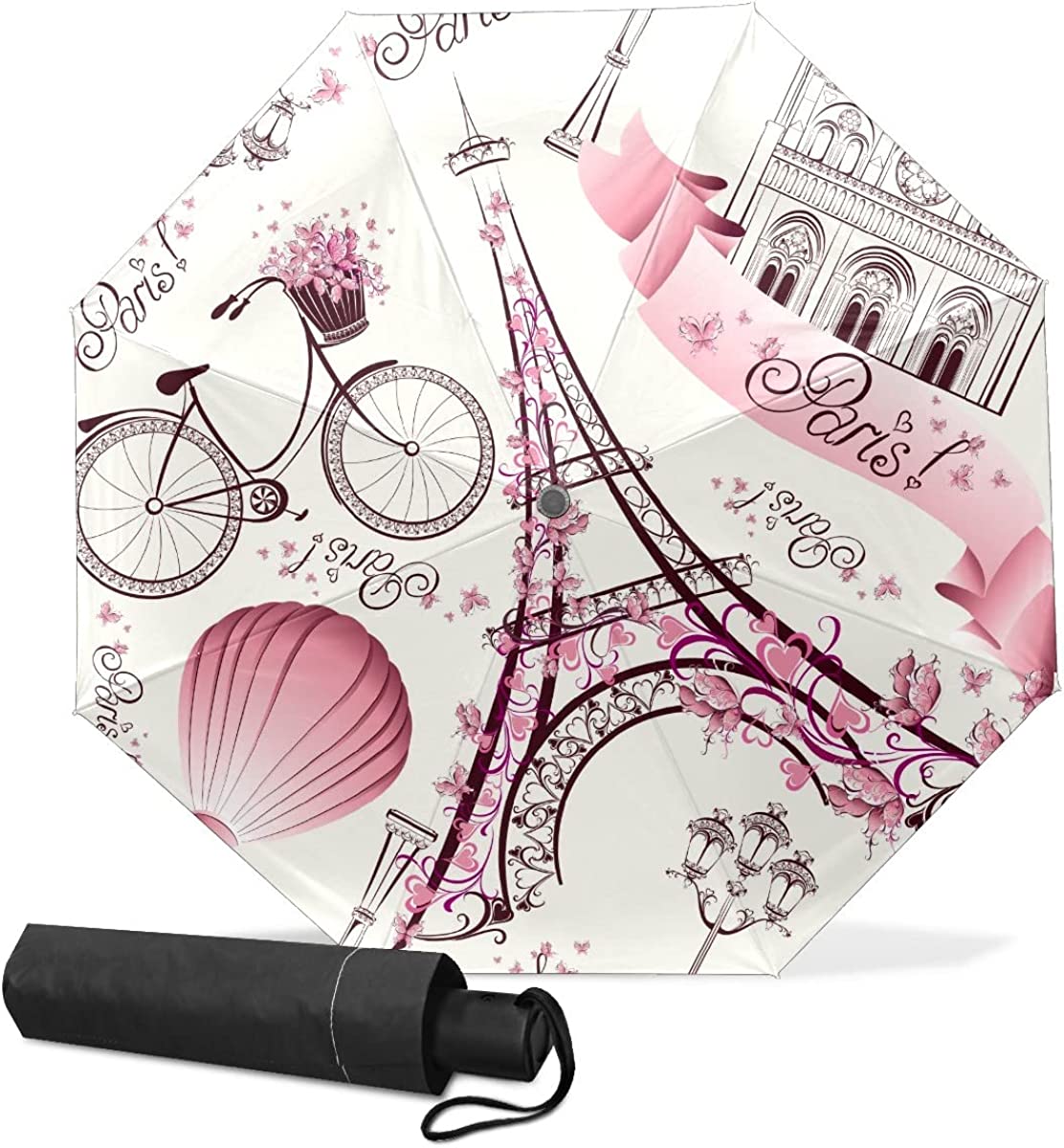 Small Folding Umbrella Romantic Paris Tower Bike Bicycle Windproof Compact Travel Umbrella Mini Vinyl Auto Open/Close Um