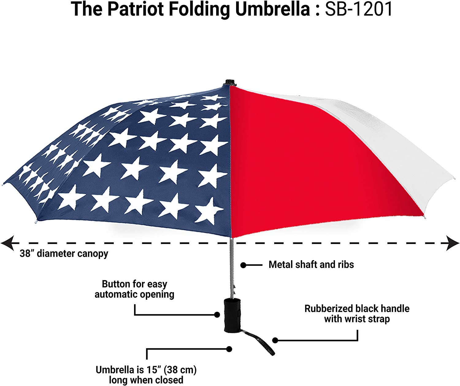 StrombergBrand Patriot Folding American Flag Umbrella (Folding USA Umbrella) Red White & Blue Folding Umbrella For Men