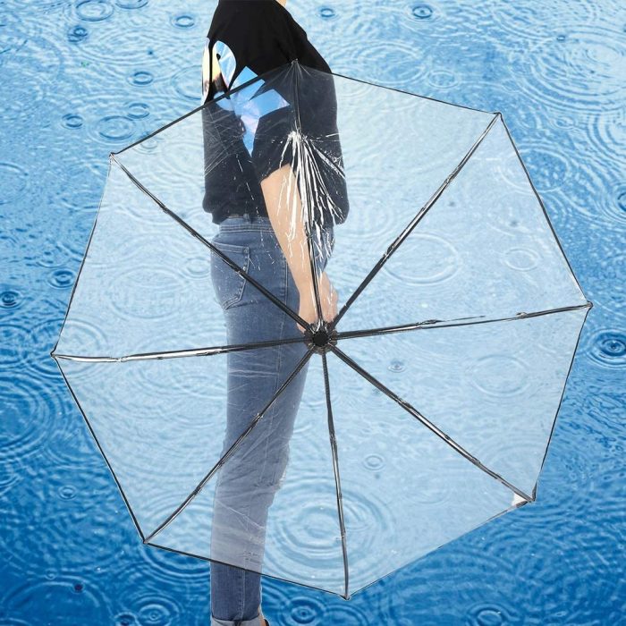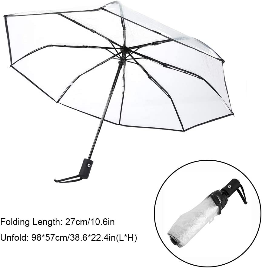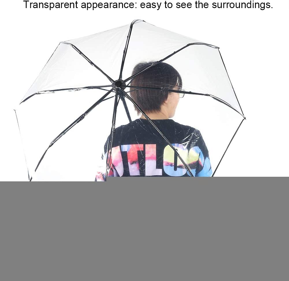 Tri-fold Clear Rain Umbrella with Frosted Handle Transparent Umbrella for Porta