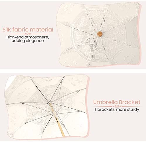 Elegant & Duraable Lace Umbrella: The lace umbrella is made of a unique silk fabric material high-end atmosphere and adds elegance to your appearance.The handle of the lace umbrella is made of solid and durable solid wood which is not easy to damage.