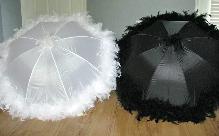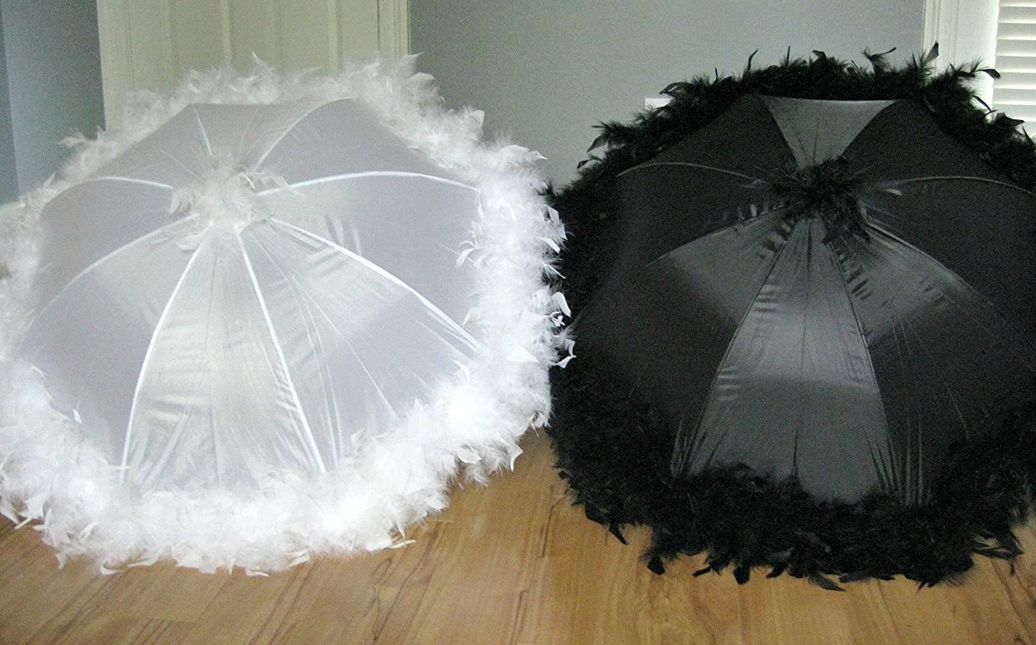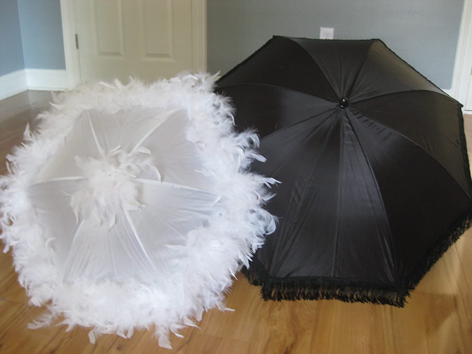 Wedding Umbrellas Second Line LARGE Set of 2 New Orleans Style- Black White Cream with Feathers or Fringe