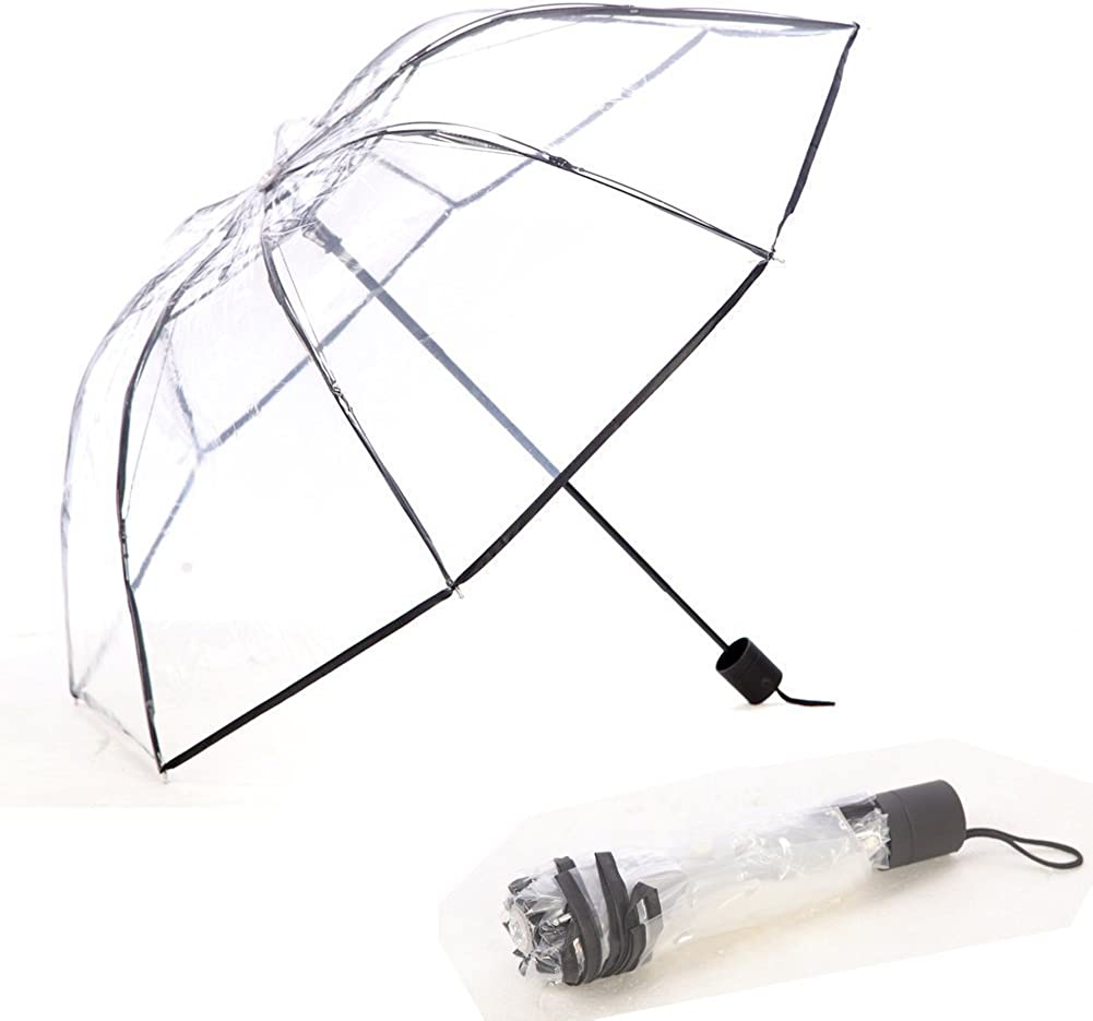 WerFamily Clear Transparent Folding Auto Open/Close Umbrella w Reinforced Steel