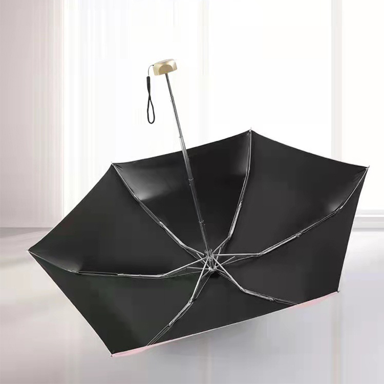 Mini Portable Flat 5 Folding Sun Umbrella 5 folding sun umbrella features:Fabric: pongeeType of umbrella: folding umbrella, fold umbrellaNumber of ribs: 6Umbrella ribs material: fiberglassWeight: about 220gPrint LOGO: YesOpen method: manualClose method: manual