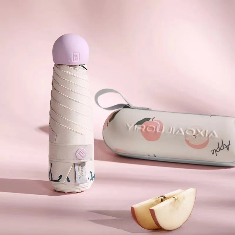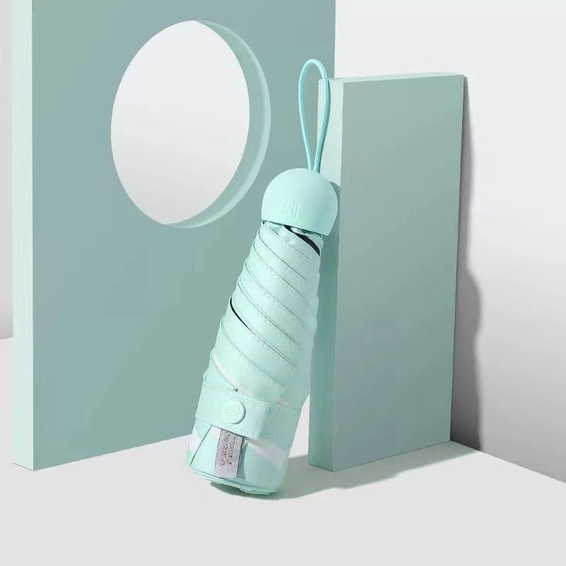 Women Portable Mini 6 Folding Sun Umbrellas Mini flat umbrella features:Fabric: Impact clothType of umbrella: sun umbrella, folding sun umbrella, mini umbrellaNumber of ribs: 6Umbrella ribs material: alloyWeight: about 236gPrint LOGO: YesOpen method: ManualClose method: Manual