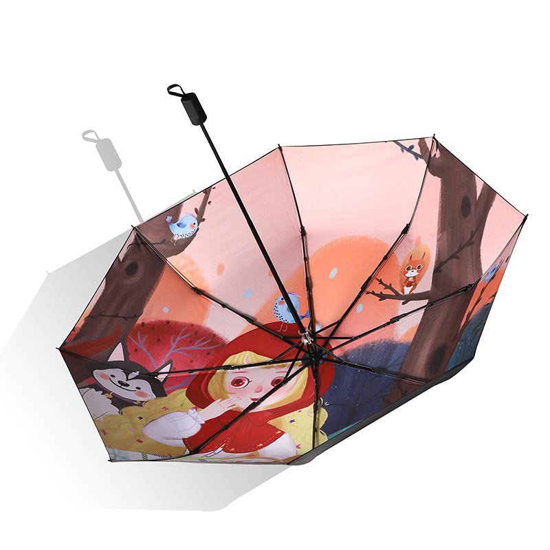 Cartoon Pattern Print Travel UV Folding Rain Umbrellas Cartoon pattern print folding rain umbrella details:Type:Compact sun/rain umbrellaFunction:FoldingControl:Manual /auto openFabric:210T pongee /Black vinyl with UVHandle:ABSFrame:Glass fiber ribs,aluminum alloy shaftSize:Can be customizedLogo/Printing:Customized Designs AcceptCartoon pattern print folding rain umbrella detail show:We can customize various styles of umbrellas, which can be adapted to various activities.Share your profile and we will solve it for you.Customization process:1. After selecting the style, confirm the pattern (the pattern and logo can be customized, and the pattern file supports JPG, PDF, AI, EPS, etc.)2. Proofing (high-definition digital printing)3. Determine the sample, final quantity, delivery date, etc.4. ShipmentWhy choose custom umbrella?We use the latest printing and manufacturing technology to provide you with highly customized folding umbrellas. Our factory produces all umbrella products and prints graphics before construction. Therefore, you have endless options to choose the perfect brand design and logo.We also use various color treatments, such as screen printingļ¼ Digital Printing and thermal transfer printing, to ensure that we can capture the exquisite details of your brand. Free personalized umbrella design serviceWe provide free personalized umbrella design service, so please send us an email to bring your creative design to life. If you have any unique insights, please contact us or go further, please try to use our design layout to personalize your umbrella.