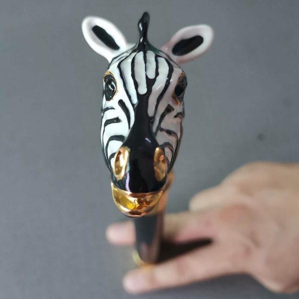 Wholesale Zebra Umbrella Handle for Compact Telescopic Umbrellas or Straight Golf Umbrellas, Colour: White with Black or Custom Colour.