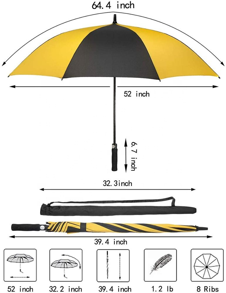 | Name | Yellow Black Auto Open EVA Handle Fiber Frame Outdoor Straight Golf Umbrella for Rain |
