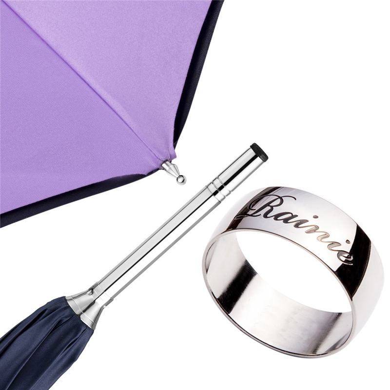 Simpler, umbrellas with a logo imprint mainly fall into the category of our stock umbrellas. Stock umbrellas come in a number of styles and sizes and start out fully assembled. We print and ship our stock logo umbrellas within ten days for a fast turnaround. Of course, there are limitations when printing on finished umbrellas. On a stock umbrella, we print in the center of the umbrella panel towards the bottom of the panel. On a finished umbrella, that is the only area of the panel flat enough to place on the printing press. We are not able to print across the seams or in the center of the overall umbrella on a stock umbrella because the ribs will interfere with the print.YuXu-long umbrella,Ladies curved handle long umbrella