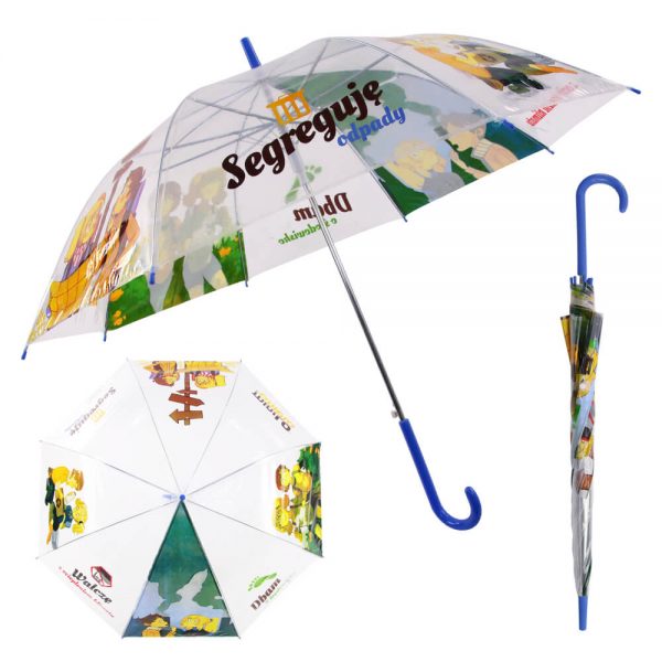 Custom Printed Clear Blunt Umbrella with Branded Logo For Kids, Round Corner Tips Safety Clear Blunt Umbrella. Fiberglass Ribs, Fiberglass Round Corner Tips, And Plastic Handle All Accept Custom Colour