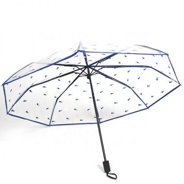 3 Fold Mini Retractable Umbrella, Clear Transparent Canopy, Custom Design Clear Folding Umbrella with Branded Logo Printing.