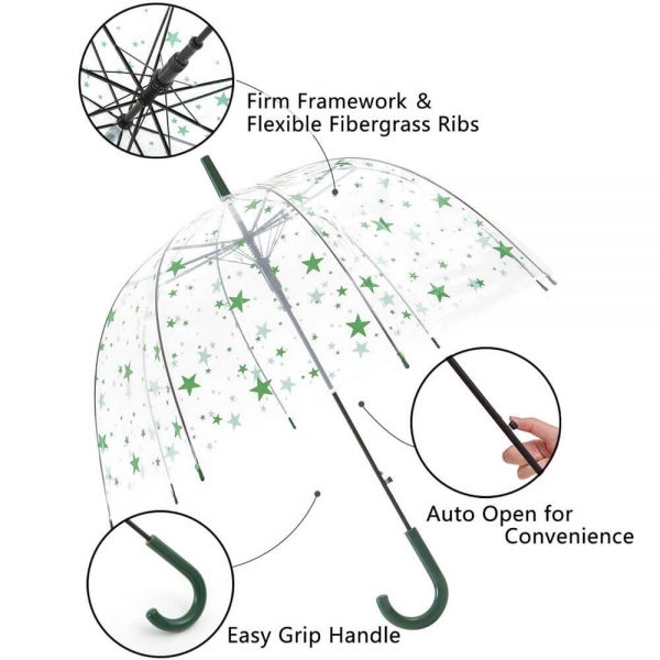 Clear Fabric, Bubble Canopy. Custom Design Clear Bubble Umbrella with Branded Logo Printing. Size Options: Compact for Kids or Large.