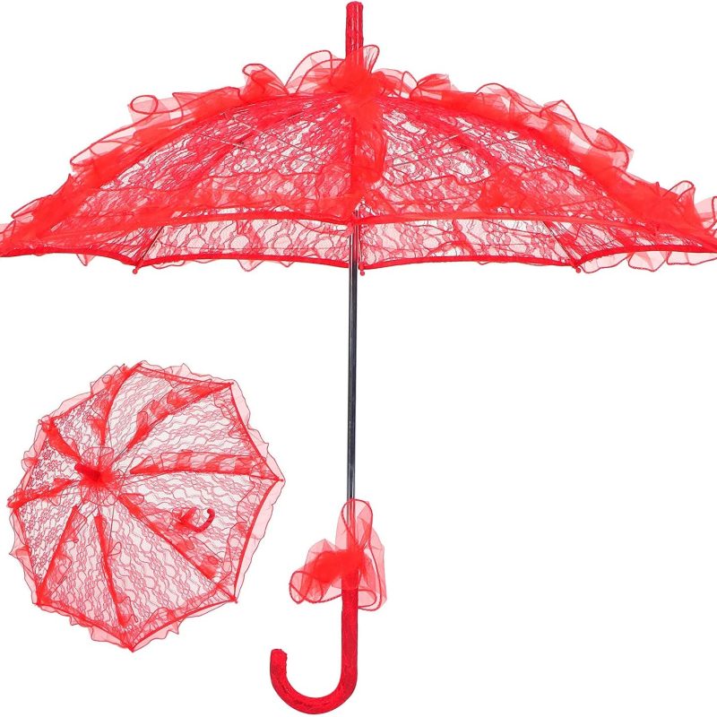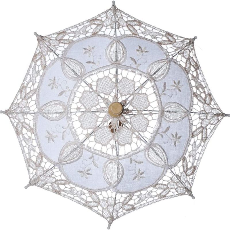 This elegant lace parasol umbrella is designed to protect you from rain and sun