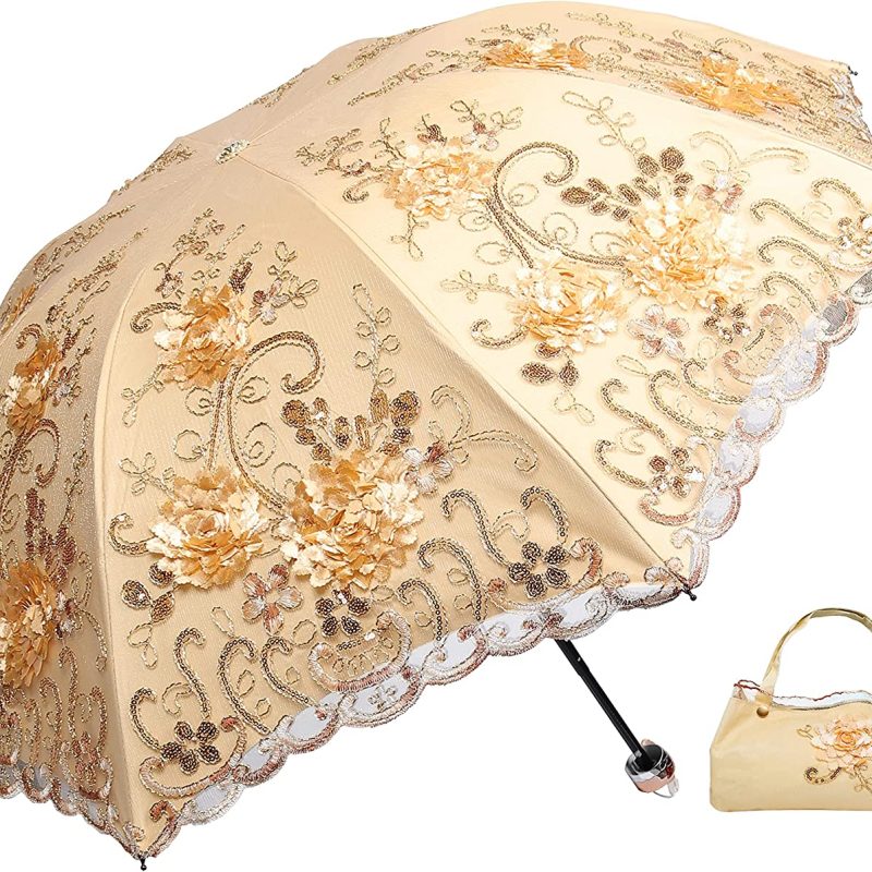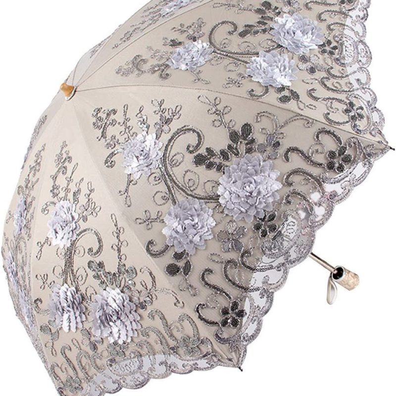 【Double Layer Umbrella】The outer layer is mesh with exquisite three-dimensional embroidery and sequins. Elegant and gorgeous. The inner layer is an impact cloth with a vinyl coating for sun protection. We also specially designed a beautifully storage bag with the same material and pattern for this umbrella which is convenient for you to carry.
